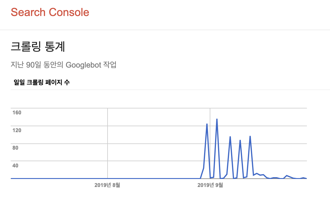 - 위의 이미지는 robots.txt, sitemap.xml을 설정하고 Google Search Console에 사이트를 등록하고 난 뒤에 구글봇이 이 사이트를 크롤링한 횟수를 나타낸다. 서치 콘솔에 등록하기 전에는 0이었던 크롤링 횟수가 변화했음을 알 수 있다.